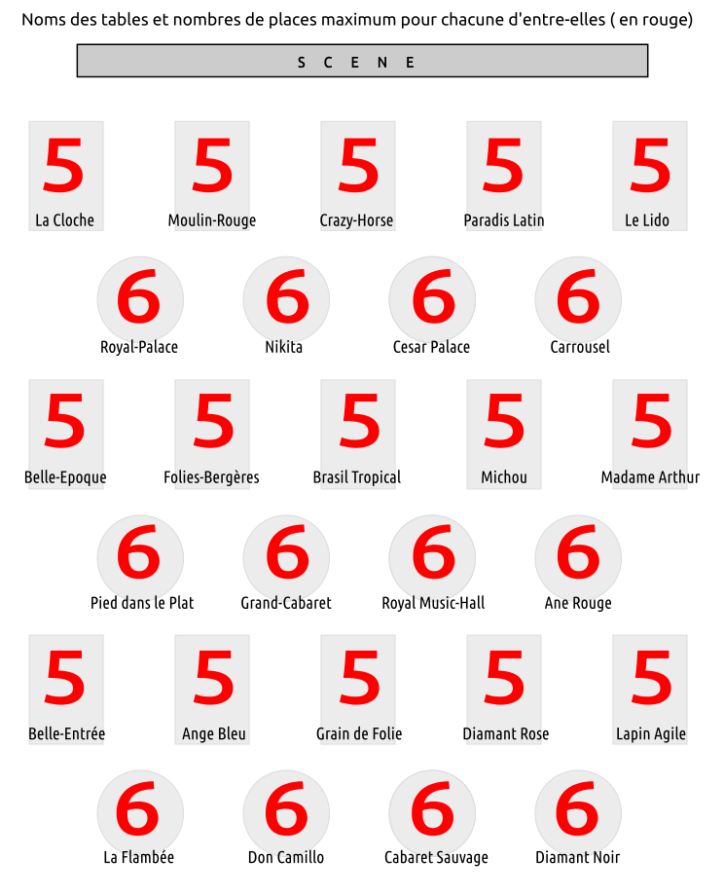 Plan de table pour le spectacle